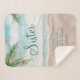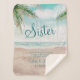 Scène de plage peinte de la brise de l'île, avec des vagues de l'océan, une plage de sable et des palmiers, avec un beau ciel bleu sarcelle. Avec des polices de caractères de typographie modernes. Une plage tropicale estivale, ou conception de mariage de destination - citation sincère personnalisée de demoiselle d'honneur sœur Couvre-lit Sherpa !