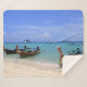 Long bateau et plage de sable tropical à la mer d'Andaman, Thaïlande