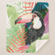 Couverture Sherpa Portrait toucan avec Feuilles tropicaux