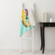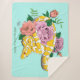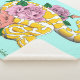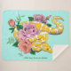 Un Python albino jaune se déplace autour de roses roses et pêche dans un arrière-plan turquoise.
