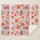 Couverture avec un motif de style média mixte amusant. De grands coeurs rouges et diverses formes aléatoires dispersés autour en faisant un motif délicieusement mignon.