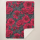 Couverture Sherpa Red roses with gray leaves on black