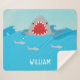 Cette jolie couverture en toison de requin fait un grand cadeau personnalisé pour tout bébé. Le design comprend une grande bouche de requin et des dents accentuées par des vagues d'eau et des requins plus petits.