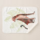 Ruby Runner I par Grace Popp. Un léopard orange rougeâtre repose devant des feuilles de palmiers vert clair. | 161321D