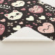 Ce kawaii chats, coeurs et motif de fleurs a une variété de mignons visages en forme de coeur sur un arrière - plan noir, orné de petites fleurs et de feuilles. La couverture est un cadeau parfait pour la Saint-Valentin ou les Anniversaires.