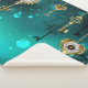 Or, clés antiques avec engrenages et cadrans accrochés sur chaînes dorées sur arrière - plan vert lumineux.