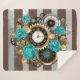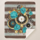 Couverture Sherpa Steampunk Clock and Turquoise Roses on Striped