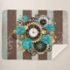Couverture Sherpa Steampunk Clock and Turquoise Roses on Striped