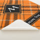 Échantillon de tartan moderne orange et noir halloween. Texte et monogramme personnalisés.