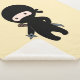 Un mignon dessin animé en ninja habillé en noir tient une étoile qui lance. On peut voir le katana d'épée japonais traditionnel attaché par-dessus son épaule.