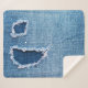 Couverture Sherpa Tissu en denim déchiré, teintes bleues.