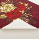 La composition de deux roses rouges artistiquement peintes et d'un rose doré, décoré d'or, feuilles de bijoux sur arrière - plan texturé.