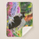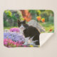 Couverture Sherpa Un joli chat noir blanc dans un jardin fleuri colo