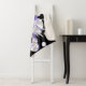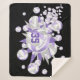 Cette jolie couverture en polaire sherpa à thème de volleyball de fille présente une "explosion" de volleyball lilas, gris et blanc de taille variée et des formes d'étoiles violet, gris et blanc sur un arrière - plan noir personnalisable - personnaliser avec le nom de l'athlète et le numéro de maillot - les panneaux lilas et gris de volleyball sont mélangés avec un kaleidoscopique floral girly motif pour une apparence texturée, et un minuscule motif pois surplombe l'étoile violette - par katz_d_zynes