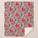 Sherpa Blanket dans une vintage impression florale William Morris de lys stylisés et d'Irises, numériquement rehaussés et colorés, dans les tons gris / gris et noir feuillage, avec des fleurs rouges profondes, sur un arrière - plan blanc
