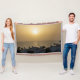 Vue sur le complexe de bungalows à la mer avec un voilier au coucher du soleil, à Costa Adeje, Espagne, Tenerife