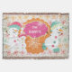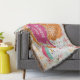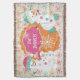 Jolie fête de Noël Snowman Famille jeter la couverture avec un arrière - plan de blanc avec divers flocons de neige colorés, un cercle d'orange avec des pois blancs, trois adorables bonhomme de neige en casquette d'hiver, un en patins à glace, et une bannière rose avec une zone que vous pouvez facilement personnaliser avec votre nom de famille! Cherchez la jupe d'arbre correspondante !