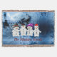 Snowmen Family of Four Personalized Throw Blanket - Personnalisez avec votre nom de famille comme indiqué ou créez votre propre message spécial. Parfait couverture pour la saison des fêtes.