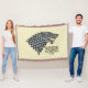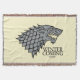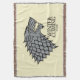 Jeu de Trones | Sigil for House Stark avec une tête de loup-de-reve et la devise : "L'hiver arrive".