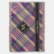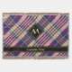 Design écossais violet, jaune doré et bleu. Motif sans couture. Texte et monogramme personnalisés.
