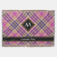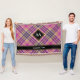 Design rose, jaune doré et écossais bleu. Motif sans couture. Texte et monogramme personnalisés.