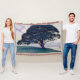 neo-impressionist pointillist landscape painting depicting a dark rich bold green pine tree by the sea, in Saint-Tropez, France, in the Provence-Alpes-Côte d'Azur region