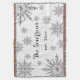Créez un cadeau d'hiver merveilleux lorsque vous personnalisez l'élégant flocon de neige d'hiver Silver Tone sur White Throw Blanket avec les noms de la mariée et du marié et l'année où ils se sont mariés. Cette couverture hivernale personnalisée présente des flocons de neige métalliques faux argent avec un arrière - plan blanc.