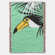 Illustration stylisée d'oiseaux de la jungle représentant un toucan toco parmi de grandes feuilles de palmier