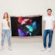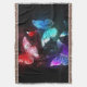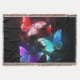 Trois papillons lumineux, rouges, violets, verts, texturés, nocturnes sur arrière - plan noir lumineux.