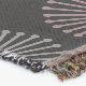 Cette couverture de lancer a un design art déco d'angle droit avec des lignes à d'autres angles dedans en argent, or, et cuivre, se répétant à différentes positions. Si vous aimez le design mais préférez différentes couleurs, envoyez-moi un message.