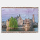 Peinture de la vieille ville de Bruges et tour du Beffroi avec ciel rose au coucher du soleil, Bruges, Belgique.