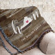 Montrez votre fierté pour votre état d'origine avec cette couverture jetée en planches de bois rustique factice mignonne avec le mot "home" en lettrage calligraphié blanc, la silhouette de l'état de Virginie remplaçant la lettre "O". Une illustration de cœur rose à l'intérieur de la carte de l'état complète le design ; vous pouvez changer la position du cœur pour votre ville natale en ouvrant l'outil de conception et en faisant glisser la forme de cœur vers votre endroit préféré. Personnalisez avec votre ville natale, le nom de votre famille et l'année de fondation pour créer un cadeau de pendaison de crémaillère parfait et mémorable ou un ajout à votre nouvelle maison.