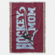 Ce design Maman de hockey cool présente des mots texturés de maman de hockey bleu glace avec une queue athlétique et une silhouette de joueur.