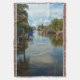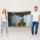 Détendez-vous en profitant de la vue paisible et paisible sur cette grande couverture. Cette photographie originale de ZoeSPEAK est une longue vue d'un canal à Fort Meyers Beach, Estero Island, Floride. À l'extrémité de la voie navigable, près de l'horizon, se trouve le pont vers le continent. Le ciel bleu est rempli de nuages blancs bouffants, d'arbres tropicaux et de bateaux bordent le canal, et un reflet de la belle scène complète cette image de la vie côtière.