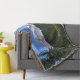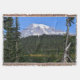 Faites-vous dorloter et restez à l'aise avec cette couverture de lancer avec des franges qui présente une photo paysagère pittoresque du Mont Rainier recouvert de neige encadrée par des sapins subbalpins, vue depuis les lacs Reflection dans le parc national Mount Rainier, Washington. Fait une belle pièce d'exposition !