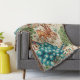Jetez une couverture dans une tapisserie de William Morris de trois cerfs à côté d'un ruisseau dans une forêt d'imaginaires dans les tons vert doux et aqua, contre un arrière - plan beige
