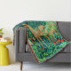 Jetez une couverture dans une tapisserie de William Morris de cerf dans un cadre de forêt d'imaginaires - cerf tan moucheté dans un arrière - plan luxuriant, bleu profond et vert de feuilles et de fleurs, accentué de tulipes rouges
