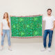 Jetez une couverture dans un vintage William Morris motif de jacinthes, tulipes et feuilles, dans les tons vert émeraude et jade, accentué d'aqua et blanc, sur un arrière - plan vert de forêt profonde
