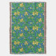 Jetez dans un William Morris, Art Nouveau, imprimé textile d'iris et de feuilles, numériquement rehaussé et coloré, en jaune doré, vert et bleu doux, sur un arrière - plan profond bleu cobalt