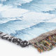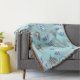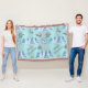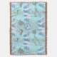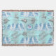 Une très charmante couverture de Noël argent et bleu avec un motif de sapins bleus et blancs, des cônes de pin argenté et des aiguilles de pin, des petits ours polaires qui dorment, Père Noël traîneau et rennes, des couronnes de baies bleues, des étincelles et des étoiles blanches et des salutations "Joyeux Noël" argenté.