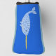 Cette superbe couverture de putter de golf présente une image art numérique d'un petit garçon bleu magique adorable Narwhal. Le corps principal du Narwhal a une texture rugueuse et est bleu tandis que le ventre est gris bleu. Le Narwhal a un oeil noir avec une pupille blanche et une corne dorée brillante sur le visage. Il a aussi la queue délicate et les palmes.