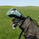 Cette couverture de tête de golf comporte une illustration de chien boxer sur un arrière - plan vert avec le texte par défaut personnalisable "upbeat". Il s'agit d'un excellent design pour les propriétaires de Boxer, les propriétaires de chiens et les amoureux de les chiens.