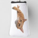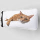 Portrait d'un tabby orange chat domestique shorthair posé sur un arrière - plan blanc avec patte drapé sur une table