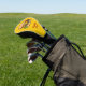 Icône Cheeseburger. Les aliments indésirables entourent les icônes jaune motif arrière - plan. Texte personnalisé.