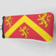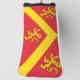 Golf Head Cover avec design avec un drapeau du comté historique d'Anglesey, au Pays de Galles, Grande-Bretagne; drapeau rouge avec chevron jaune et trois lions; les bras attribués de Hwfa ap Cynddelw, l'insigne traditionnel du comté