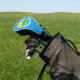Golf Head Cover avec un design avec le drapeau de Provo, Utah. Un drapeau bleu avec le logo de Provo City au centre. Le logo représente le lac de l'Utah et les sommets de montagne avoisinants avec le soleil levant en arrière - plan