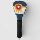 Golf Head Cover avec un design avec le drapeau de Tulsa, Oklahoma. Un drapeau beige et bleu marine avec un bouclier or Osage contenant un cercle rouge et une étoile beige à six branches