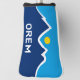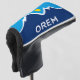 Golf Head Cover avec un design avec le drapeau d'Orem, Utah. Un drapeau bleu, blanc et jaune avec des sommets de montagne et le soleil au centre