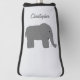 This elephant design golf club head cover is an accessory that you slide over the head of a golf club for protection against knocks whilst sitting in your golf bag. Made out of polyester, cotton, and marine vinyl with a choice of different piping colours. You can customise this golf club head cover with any text. Should you require any help with customising then contact us through the message link on this page. Elephant design golf club head cover.