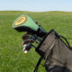 Cette superbe couverture de conducteur de golf présente une image graphique d'une pièce d'or avec deux nuances d'or. Le cercle extérieur a une texture rugueuse. À l'intérieur du cercle intérieur de la pièce se trouve un shamrock doré texturé composé de 3 feuilles et d'une tige.